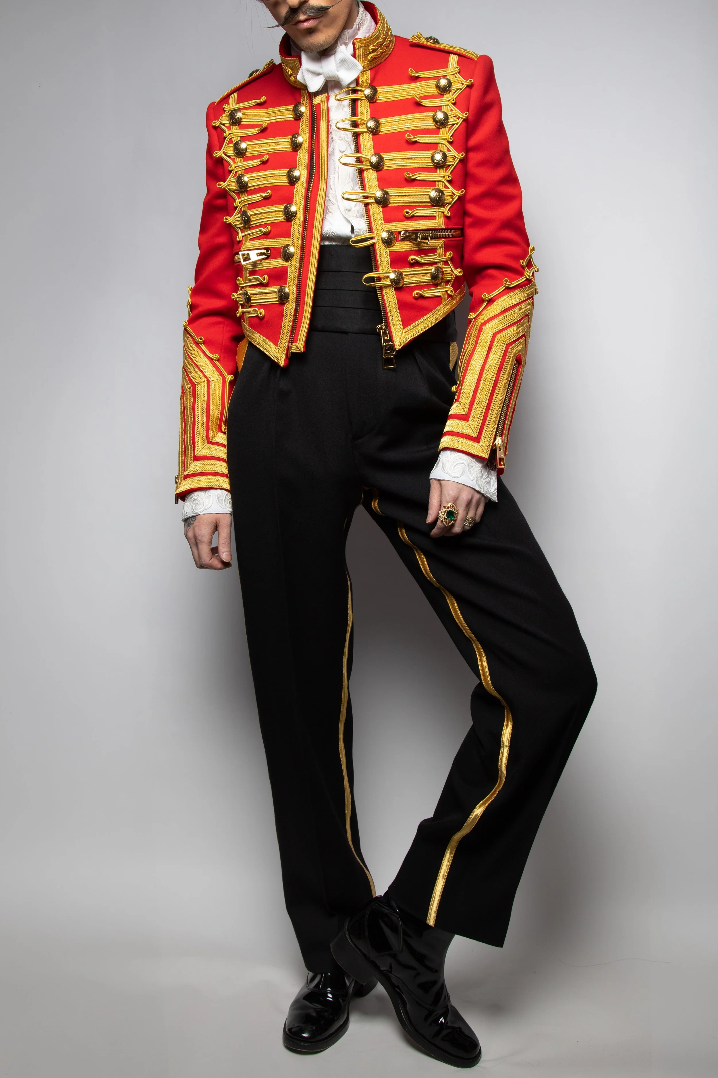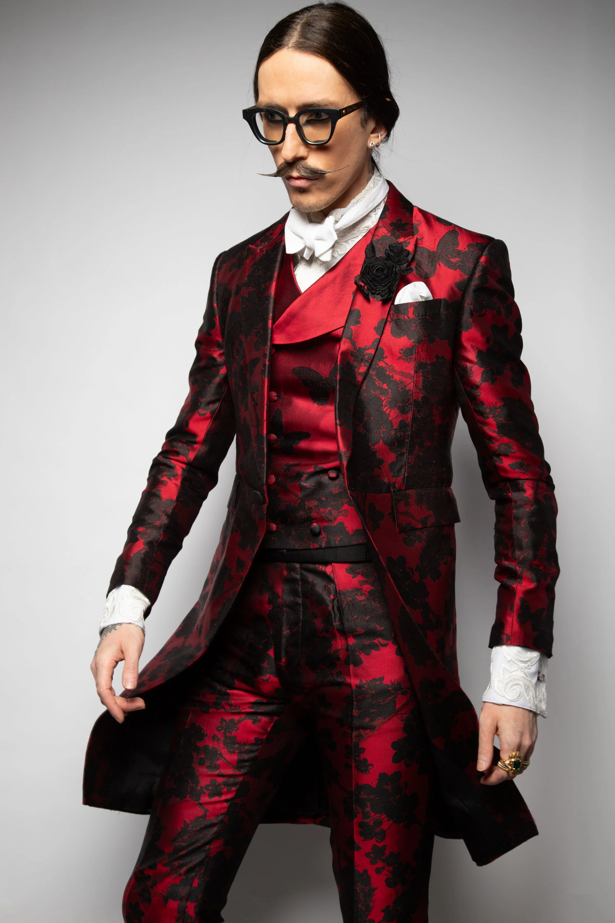 Red Barathea Zip Lapel Suit